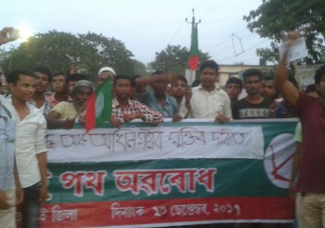 অখিল গগৈক মুক্তিৰ দাবীত হোজাইত কৃষক মুক্তিৰ পথ অৱৰোধ