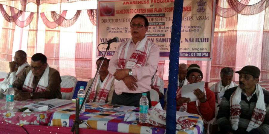 অনুসূচিত জাতি কল্যান সঞ্চালকালয়ৰ উদ্যোগত বে-চৰকাৰী সংস্থা যুৱ শক্তি উন্নয়ন সমিতিৰ ব্যৱস্থাপনাত অনুষ্ঠিত সজাগতা সভাত সভাপতিত্ব কৰে স্থানীয় সমাজকৰ্মী ঘনকান্ত দাসে। যুৱ শক্তি উন্নয়ন সমিতিৰ মূখ্য কাৰ্যবাহী বিষয়া তিলক দাসে উদ্দেশ্য ব্যাখ্যা আগবঢ়োৱা সভাখনত অসমৰ অনুসূচিত জাতি কল্যাণ সঞ্চালকালয়ৰ সহকাৰী গৱেষক বিষয়া ৰামেশ্বৰ বৰা, সঞ্চালকালয়ৰ অধীক্ষক গৌৰিকান্ত চৰকাৰ, শিক্ষাবিদ টংকেশ্বৰ দাস আৰু অসম অনুসূচিত জাতি পৰিষদৰ কাৰ্যকৰী সভাপতি বানেশ্বৰ দাসে অনুসূচিত জাতিৰ আঁচনিসমূহৰ ওপৰত বহুল ব্যাখ্যা আগবঢ়াই ৷