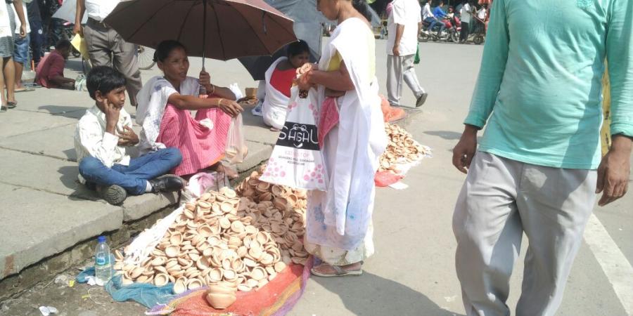 দীপাৱলীত মাটিৰ চাকি বিক্ৰী কৰি দুপইচা উপাৰ্জনৰ বাবে এতিয়া তেওঁলোকে হাজাৰ হাজাৰ মাটিৰ চাকি সাজু কৰিছে। চীনৰ সামগ্ৰীৰে ৰাজ্যৰ বজাৰ ভৰি পৰিছে, তাৰ বিপৰীতে এই মৃৎ শিল্পী সকলে চীনৰ সামগ্ৰী বৰ্জন কৰি মাটিৰ চাকিৰে পোহৰৰ উৎসৱ দীপাৱলী উদযাপন কৰিবলৈ ৰাইজলৈ আহ্বান জনাইছে। অভিযোগ মতে, চীনা সামগ্ৰীৰ বাবেই এতিয়া বিক্ৰী হ্ৰাস হৈছে থলুৱা মৃৎ শিল্পৰ।