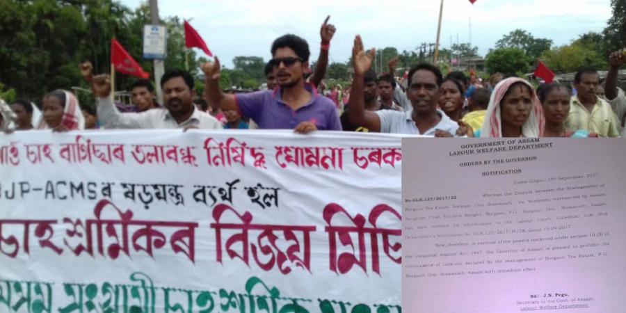 বে-আইনী ভাবে দুমাহধৰি বন্ধ থকা বৰগাঁও বাগিছাৰ লক-আউট প্ৰত্যাহাৰৰ নিষেধাজ্ঞা জাৰি কৰিবলৈ বাধ্য হ'ল চৰকাৰে। যাৰ বাবে শ্ৰমিকসকলে বিজয়ী সমদল উলিযায়৷ বাগিচাৰ মালিকে চিপিআই এম-এল দলৰ লাল ঝাণ্ডাৰ ইউনিয়ন ধংস কৰাৰ বাবেই বাগিচা খনৰ লক আউট কৰা বুলি ঘোষণা কৰি চাহ শ্ৰমিক সকলে লাল ইউনিয়ন ত্যাগ কৰিলেহে লক আউট প্ৰত্যাহাৰ কৰিব বুলি ধমকি দিছিল।