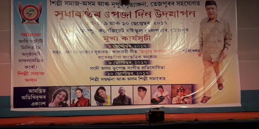 তেজপুৰ টাউনঃ সুধাকণ্ঠ ড০ ভূপেন হাজৰিকাৰ ওপজা দিনত শিল্পী সমাজ-অসমৰ উদ্যোগত তথা নূপুৰ নৃত্যাংগনাৰ সহযোগত তেজপুৰৰ কলেজিয়েত খেলপথাৰত অসম-শিল্পী সমাৰোহ ২০১৭ উদযাপন কৰা হয়। তিনিদিনীয়া কাৰ্যসূচীৰে উদযাপিত উক্ত সমাৰোহ খনৰ আজি প্ৰথমটো দিন।