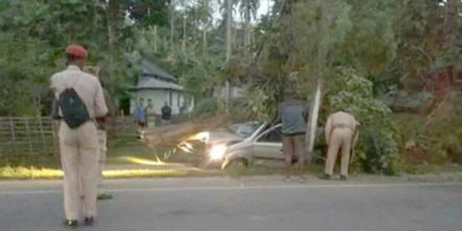 বিজেপি নেতাৰ গাড়ীৰ খুন্দাত উঘালি পৰিল প্ৰকাণ্ড গছ