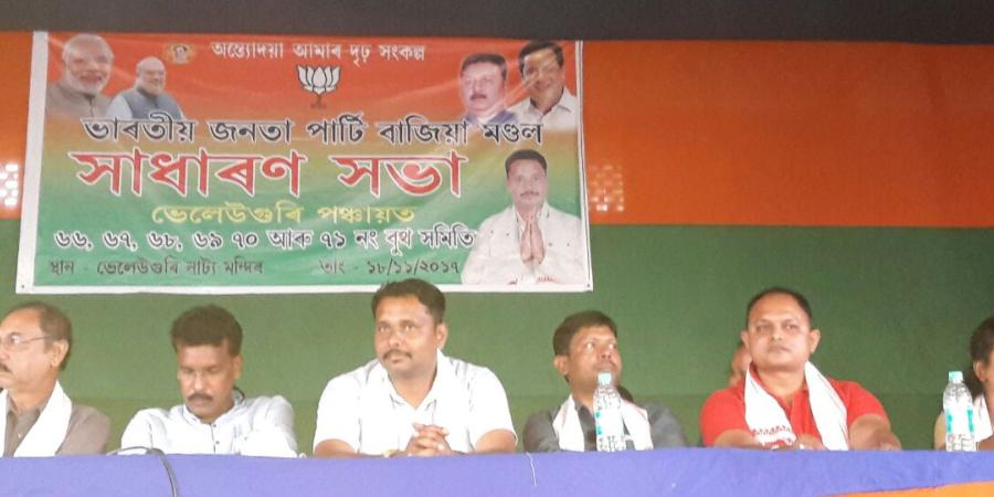 চামগুৰিঃ চামগুৰি সমষ্টিৰ ভেলেউগুৰিত শনিবাৰে শাসকীয় বিজেপিৰ এখন সভা অনুষ্ঠিত হয়৷ বাজিয়া মণ্ডলৰ উদ্যোগত ভেলেউগুৰি নাট্য মন্দিৰত অনুষ্ঠিত সভাত বিশিষ্ট অতিথি হিচাপে উপস্থিত থাকি কলিয়াবৰ জিলা বিজেপিৰ সভাপতি অনিল শইকীয়াই ইংৰাজসকলে অসমৰ পৰা সকলো লুটি লৈ গ'ল যদিও কিছু দি থৈ গ'ল কিন্ত কংগ্ৰেছ দলে বিগত পোন্ধৰ বছৰে ৰাইজৰ পৰা সকলো লুটি লৈ গ'ল, মাথোঁ দি থৈ গ'ল সূতা, কম্বল আৰু জৱকাৰ্ডৰ দৰে কেইটামান আঁচনি৷