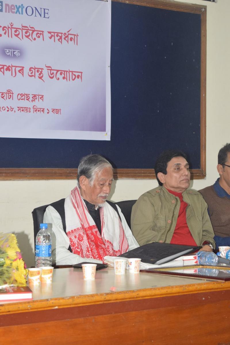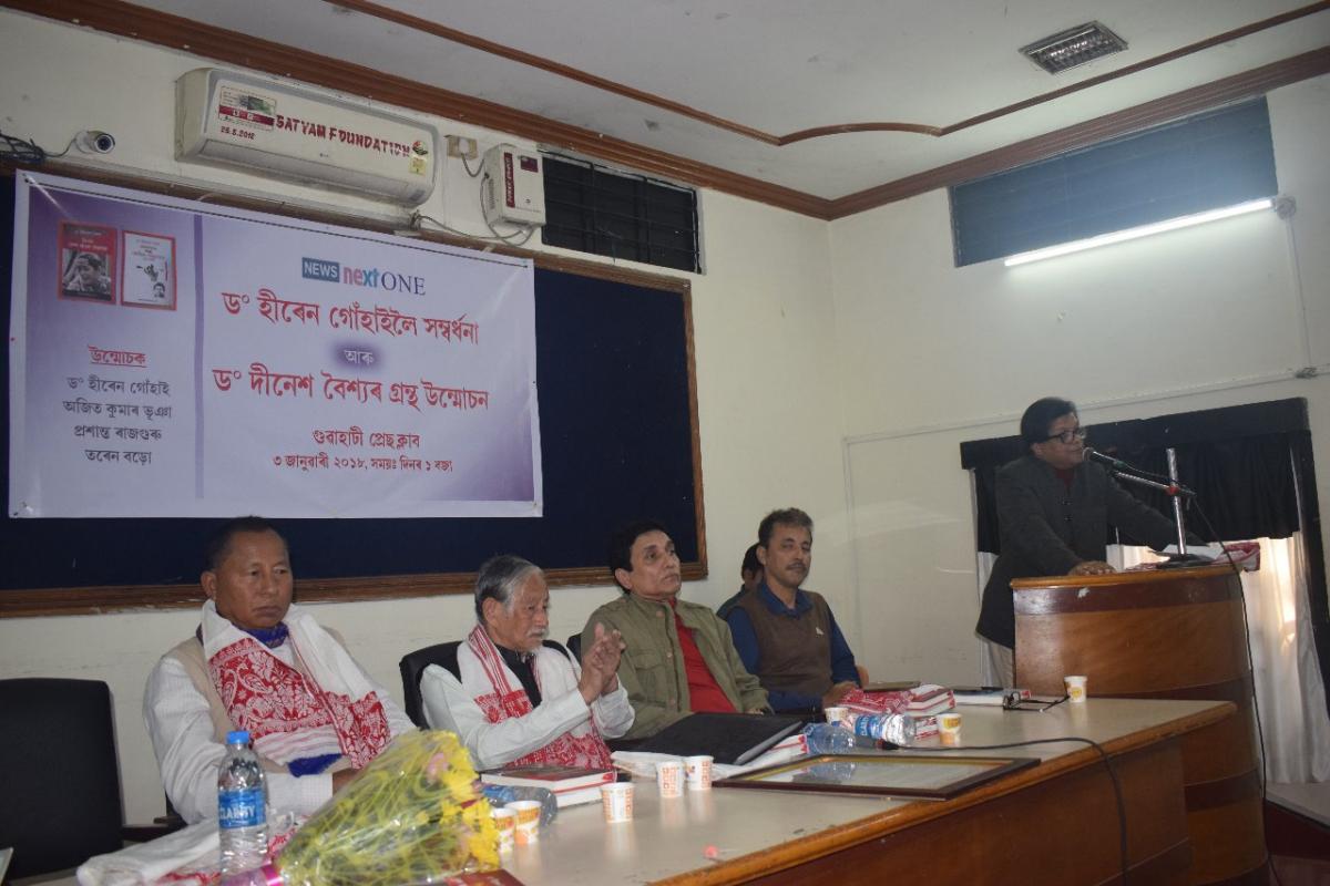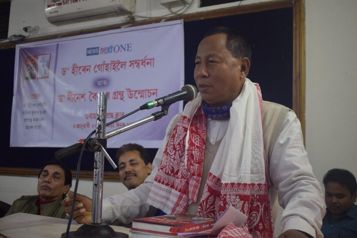 একেটা অনুষ্ঠানতে newsnextone.comৰ প্ৰতিষ্ঠাৰ এবছৰ সম্পূৰ্ণ হোৱাৰ উপলক্ষে ৰাজ্য খনৰ চিন্তাৰ নায়ক, অসমীয়া জাতিৰ সংকটৰ মুহূৰ্তত বটবৃক্ষ হৈ থিয় দিয়া ড০ হীৰেণ গোহাঁইক গ্ৰন্থ উন্মোচনী সভাত বিশেষ ভাৱে সম্বৰ্ধনা জনায় newsnextone.comৰ পৰিচালন সঞ্চালক আব্দুল আজিজ চৌধুৰীয়ে৷ এখন মানপত্ৰ, চেলেং চাদৰ, ফুলৰ থোপা আদিৰে সম্বৰ্ধনা যাচে বিশিষ্ট বুদ্ধিজীৱীগৰাকীক৷ সম্বৰ্ধনা গ্ৰহণ কৰি তথা গ্ৰন্থ উন্মোচন কৰি দিয়া ভাষণত ড০ হীৰেণ গোহাঁইয়ে ছাত্ৰ-ছাত্ৰী আৰু অভিভাৱকক গ্ৰন্থ দুখন পঢ়িবলৈ আহ্বান জনায়৷