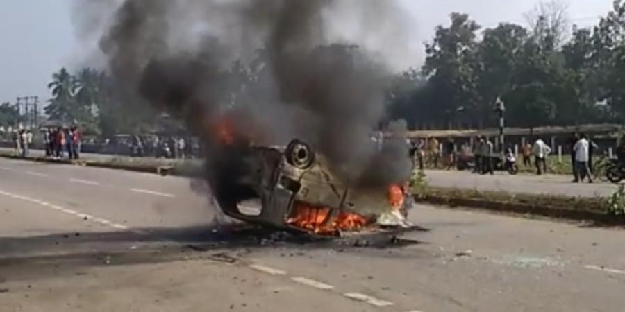 জাগীৰোডঃ সোমাবাৰে মৰিগাঁও জিলাৰ জাগীৰোডত পথ দুৰ্ঘটনাত এগৰাকী যুৱকৰ মৃত্যুক কেন্দ্ৰ কৰি তীব্ৰ উত্তেজনাৰ সৃষ্টি হয়৷ পথ দুৰ্ঘটনা সংঘটিত হোৱাৰ পিছতে একাংশ উত্তেজিত লোকে ঘাই পথত এখন এল্ট’ জ্বলাই দিয়ে৷ ৰাজ পথৰ মাজতে দাউ-দাউকৈ জ্বলি ছাই হৈ যায় এল্ট'খন৷ ইমানে নহয় এল্ট’খনৰ চালকজনক আক্ৰমণৰ লক্ষ্য কৰি লয় যদিও কথমপি প্ৰাণ ৰক্ষা পৰে চালকজনৰ৷