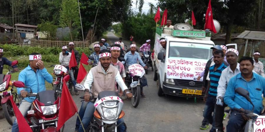 বিহালীঃ বিপ্লৱী যুৱ সন্থা আৰু অসম সংগ্ৰামী চাহ শ্ৰমিক সংঘৰ নেতা-কৰ্মীয়ে বিশ্বনাথ জিলাৰ বিহালীত বৃহস্পতিবাৰে বিভিন্ন ৰেলি উলায়াই প্ৰতিবাদ সাব্যস্ত কৰে৷ বিভিন্ন দাবীৰ সমৰ্থনত বাইক ৰেলী উলিয়াই বিশ্বনাথ জিলাৰ বিহালী বিপ্লৱী যুৱ সন্থা আৰু অসম সংগ্ৰামী চাহ শ্ৰমিক সংঘৰ বিশ্বনাথ চক্ৰ সমিতিয়ে চাহ শ্ৰমিকৰ দৈনিক মজুৰি ৩৫০ টকালৈ বৃদ্ধি কৰাৰ লগতে খোৱাপানী, চিকিৎসা সেৱা আদি প্ৰদানৰ দাবীত এই ৰেলি উলিয়াই৷