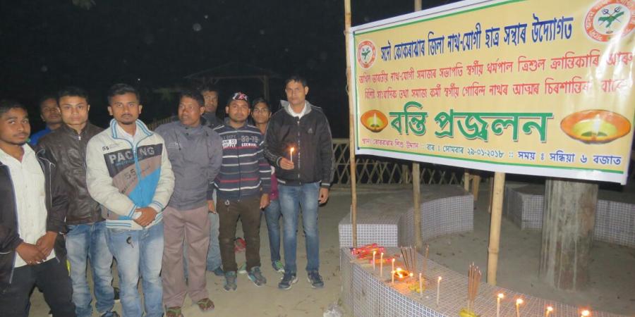 কোকৰাঝাৰ জিলা যোগী সন্মিলনী আৰু নাথ যোগী ছাত্ৰ সন্থাৰ যৌথ উদ্যোগত সন্ধিয়া ৭.০০ বজাত কোকৰাঝাৰ শিশু উদ্যানত জ্যেষ্ঠ সাংবাদিক গোবিন্দ নাথ আৰু অখিল ভাৰতীয় নাথ-যোগী সমাজৰ সভাপতি ধৰ্মপাল সিং ক্ৰান্তিকাৰীৰ বিদেহী আত্মাৰ চিৰশান্তি কামনাৰে বন্তি প্ৰজ্বলন কৰে।