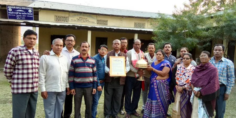 নগাঁওঃ নগাঁও জিলাৰ বেবেজীয়াৰ জামুগুৰি বাপুজি উচ্চতৰ মাধ্যমিক বিদ্যালয়ত বৃহস্পতিবাৰে এখন বিশেষ সভা অনুষ্ঠিত হয়৷ অভিভাৱক, শিক্ষক-শিক্ষয়িত্ৰী, ছাত্ৰ-ছাত্ৰীৰ উপস্থিতিত অনুষ্ঠিত সভাত অৱসৰপ্ৰাপ্ত চতুৰ্থ বৰ্গৰ কৰ্মচাৰী দুলাল চন্দ্ৰ নাথক আনুষ্ঠানিকভাবে বিদায় জনোৱা হয়৷