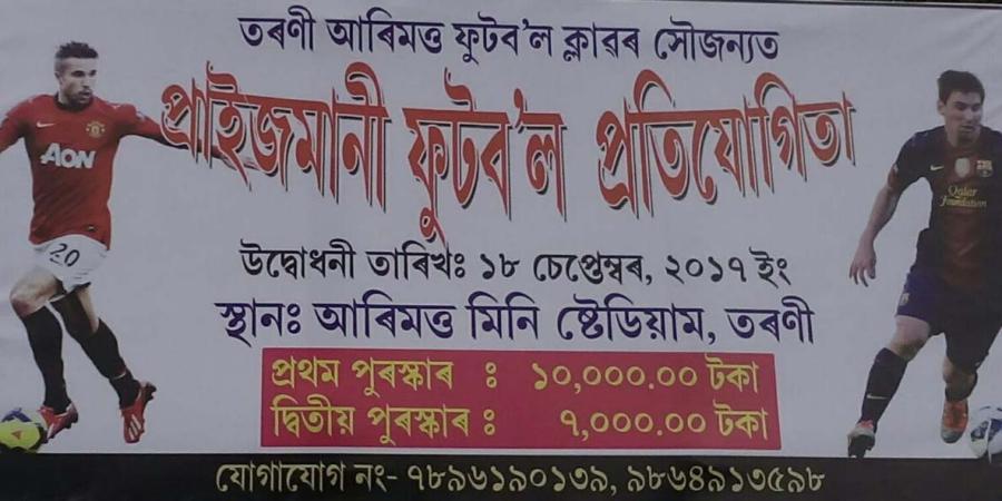 তুলসীবাৰীঃ অহা সোমবাৰৰ পৰা ৰঙিয়াৰ সমীপৰ তৰণীত অনুষ্ঠিত হ’ব প্ৰাইজমানি ফুটবল প্ৰতিযোগিতা৷