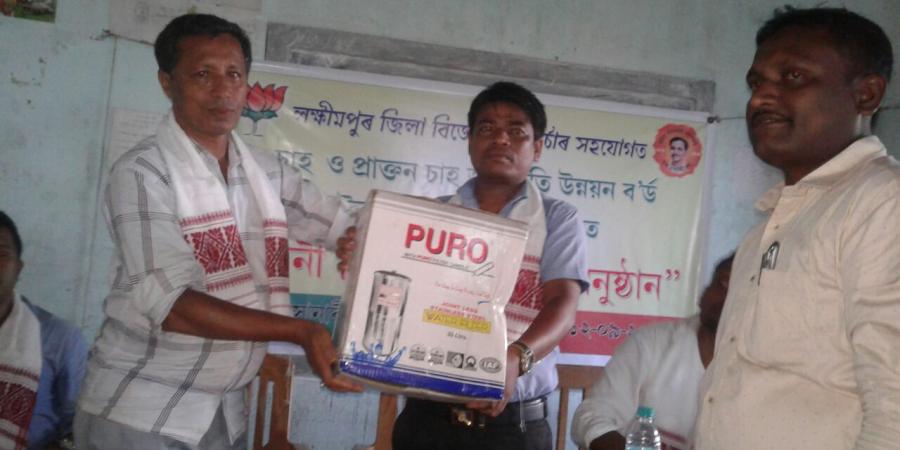 লখিমপুৰঃ লখিমপুৰ জিলা বিজেপি চাহ মৰ্চাৰ সহযোগত চাহ আৰু প্ৰাক্তন চাহ জনজাতি উন্নয়ন বৰ্ড উত্তৰ লখিমপুৰৰ উদ্যোগত আজি বিহপুৰীয়া সোনাৰী গাওঁ প্ৰাথমিক বিদ্যালয়ত সোনাৰী গাঁও আৰু কেয়ামৰা গাঁৱৰ দুখীয়া পৰিয়ালৰ মাজত বিনামূলীয়াকৈ পানী ফিল্টাৰ বিতৰণ কৰা হয়৷