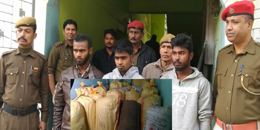 লখিমপুৰ আৰক্ষীৰ অভিযানত জালত পৰিল তিনি যুৱক সহ ৬ কুইন্টল গাঞ্জা