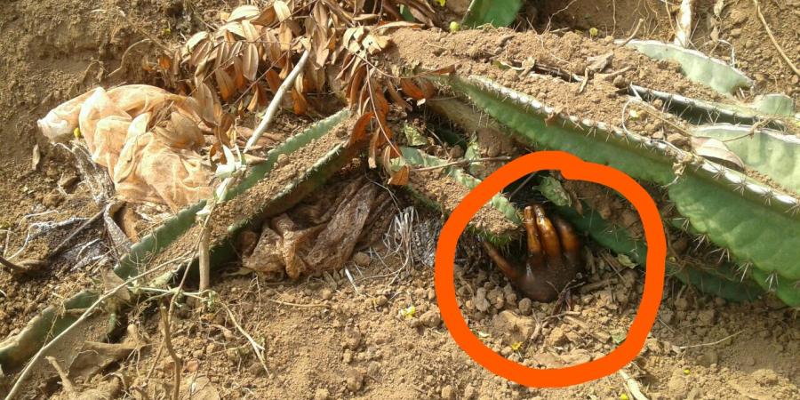 পাহাৰত পুতি থোৱা অৱস্থাত বস্তাৰ ভিতৰৰ পৰা এখন হাত ওলাই থকা প্ৰত্যক্ষ কৰি স্থানীয় লোকে মায়ং আৰক্ষীক খবৰ দিয়ে৷