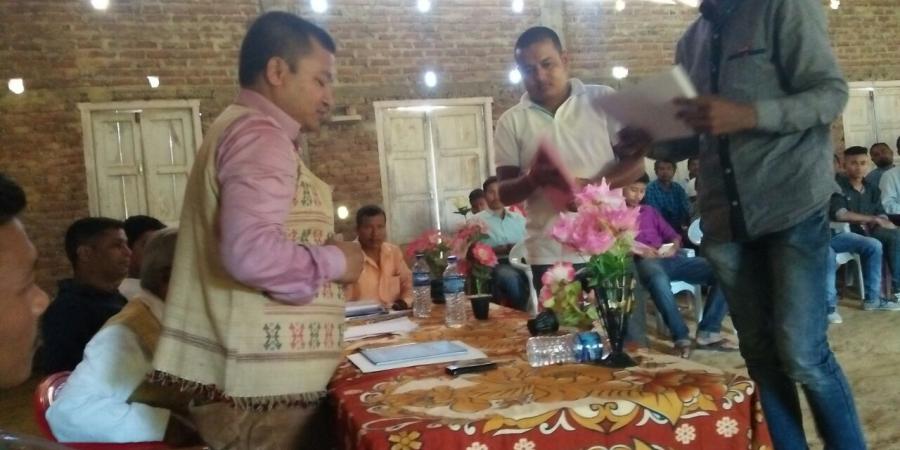 অৱসৰপ্ৰাপ্ত শিক্ষক যোগেন দুৱৰাৰ সভাপতিত্বত অনুষ্ঠিত সভাত অঞ্চলটোৰ ভালে সংখ্যক গণ্য-মান্য লোক উপস্থিত থাকে৷