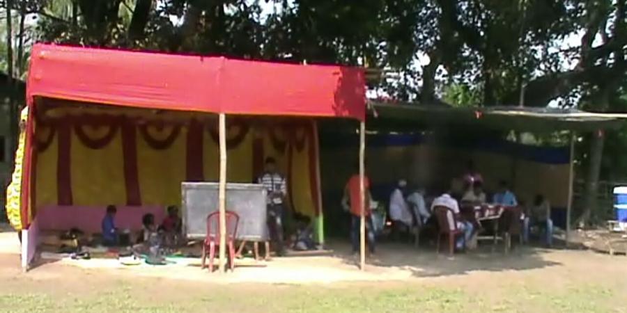 ইফোলে বিদ্যালয় গৃহৰ অভাৱত মধ্য টুবুকী প্ৰাথমিক বিদ্যালয়ত বাহিৰতে অস্থায়ী ভাৱে পেণ্ডল নিৰ্মাণ কৰি গুণোৎসৱ উদযাপন কৰা হৈছে।