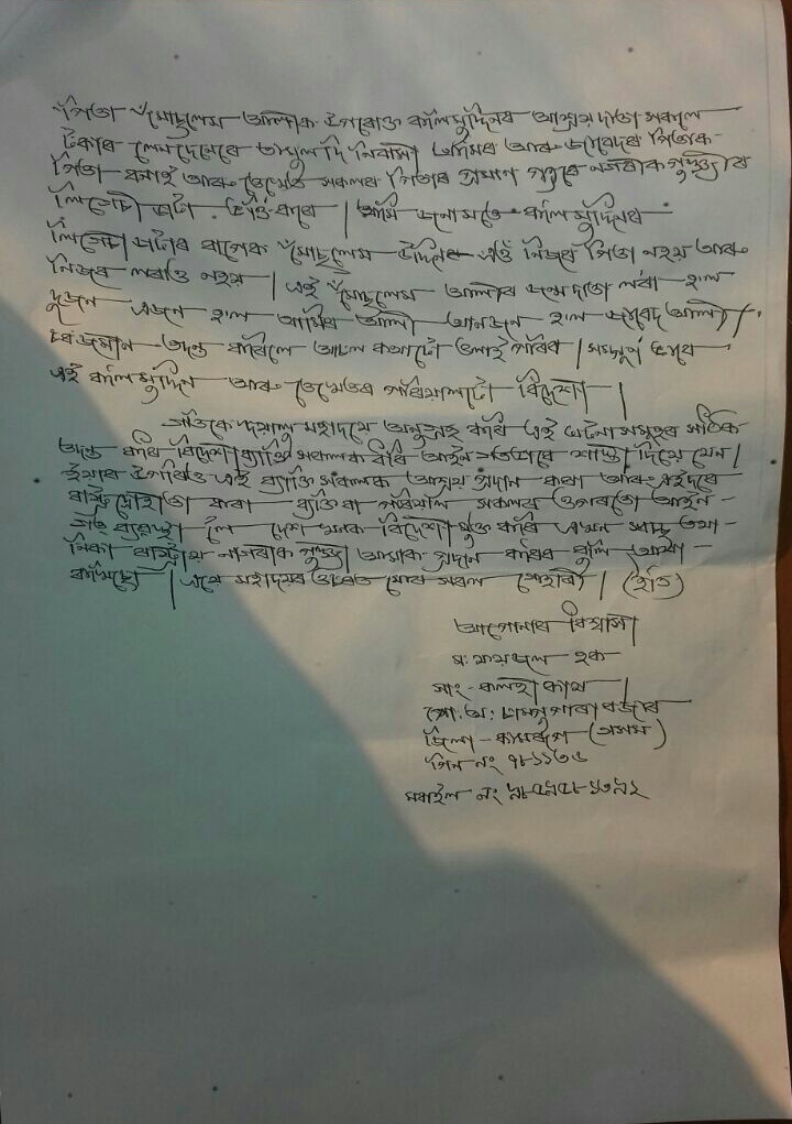 এটি ৰাজনৈতিক দলৰ নেতাৰ ছত্ৰছায়াত সন্দেহযুক্ত নাগৰিকে আঠ বছৰত দুবাৰকৈ পিতৃৰ নাম সলনি কৰি যেনে তেনে NRCত নাম সোমাবৰ বাবে চেষ্টা অব্যাহত ৰখা বুলি অভিযোগ উত্থাপন হৈছে। ৰাজ্যত NRCৰ খছৰাক লৈ ব্যাপক ব্যস্ততা অব্যাহত আছে যদিও সেই সময়তে এনে প্ৰচাৰে চাঞ্চল্যৰ সৃষ্টি কৰাটো স্বাভাৱিক৷ ছয়গাঁও বিধান সভা সমষ্টিৰ চাম্পুপাৰাৰ কলহীকাষৰ ভোটৰ তালিকাত বিসংগতি থকা ৬ সন্দেহযুক্ত নাগৰিকৰ নাম NRCত সোমাব বিছৰাৰ তথ্য প্ৰকাশ হয়৷