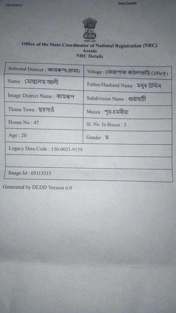 যদিও নতুনকৈ প্ৰস্তুত কৰা তথা ২০১৮ চনৰ প্ৰকাশ পাবলগীয়া ফটো যুক্ত ভোটাৰ তালিকাত লোক কেইজনৰ পিতৃৰ নাম হঠাৎ সলনি হয়৷ ৪৯ নং ছয়গাঁও সমষ্টিৰ ১ নং তামুলদি ভোট গ্ৰহণ কেন্দ্ৰত ২০১৮ত প্ৰকাশ পাবলগীয়া ফটোযুক্ত ভোটৰ তালিকাত বিল্লাল হুছেইনৰ পিতৃৰ নাম হাছেন আলীৰ বুলি উল্লেখ থকাৰ পৰিৱৰ্তে নাজিৰ আলী বুলি উল্লেখ আছে৷