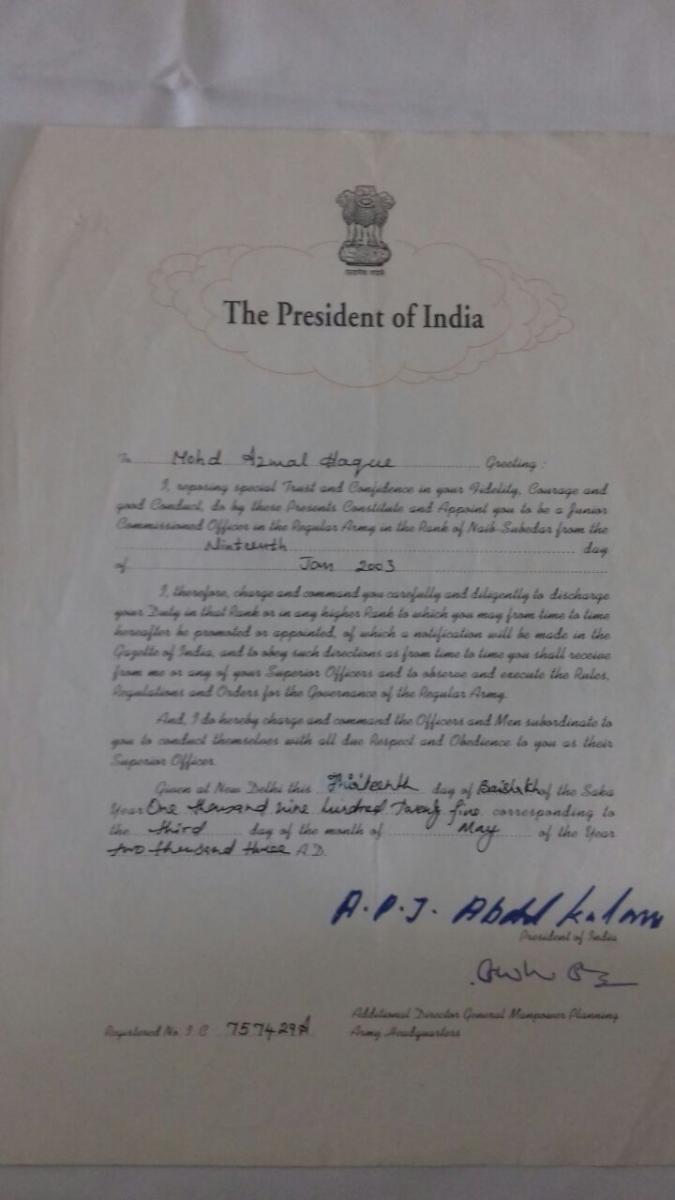 আজমল হকক ভাৰত চৰকাৰে সুখ্যাতিৰে কৰ্তব্য পালন কৰাৰ বাবে তদানীন্তন ৰাষ্ট্ৰপতি এপি জে আব্দুল কালামৰ জৰিয়তে প্ৰশংসা পত্ৰও দিছিল। তেওৰ পুত্ৰয়ো সেনা-বাহিনীত চাকৰি কৰি আছে৷