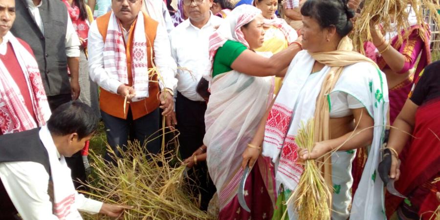 পোন প্ৰথমে অসমীয়া ৰীতি অনুসৰি তামোল পানেৰে গাঁৱৰ সকলো লোকে সেৱা জনাই অতিথিসকলক। আনুষ্ঠানিকভাৱে কৃষি বিষয়াই গাঁৱৰ ৰাইজক উন্নত মানদণ্ডৰ শস্যৰ বীজ বিতৰণ কৰে। তাৰ পিছত গাঁৱৰ দাৱণী সকলে ধান কাটিবলৈ আৰম্ভ কৰে।