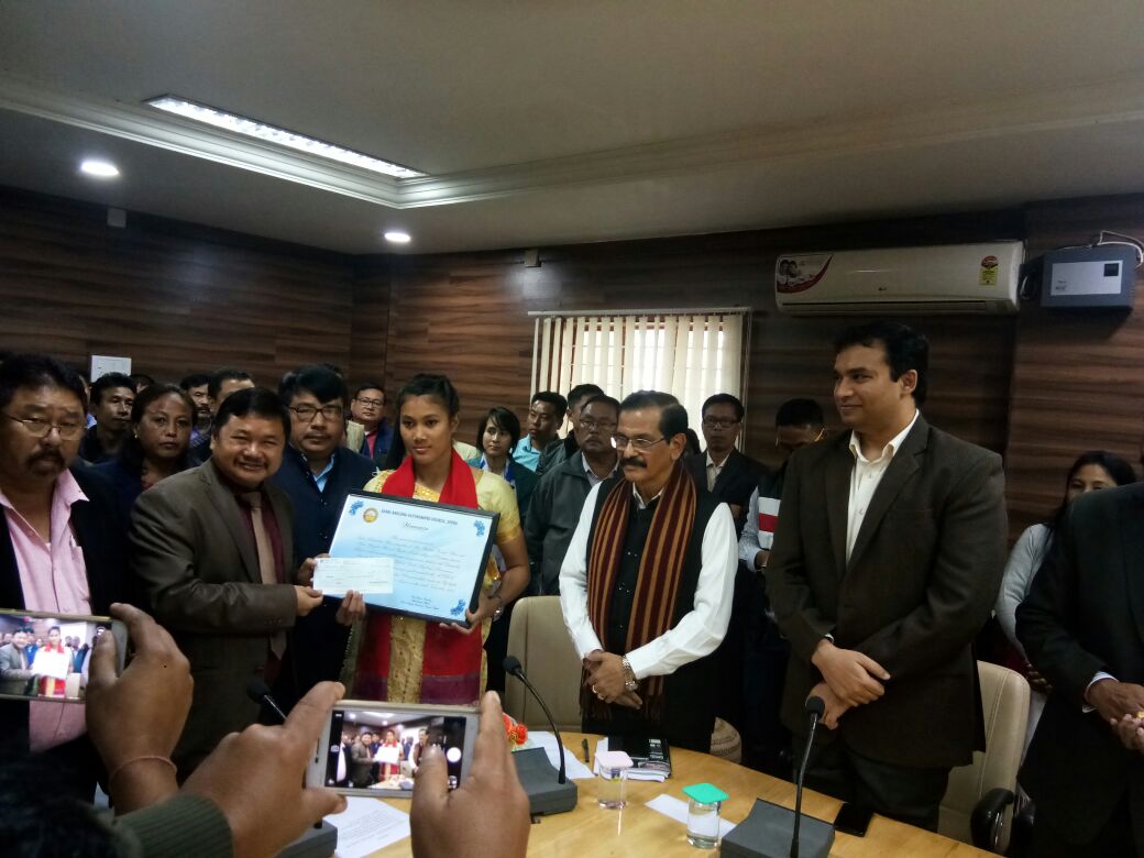 তাৰ পিছত পুৱা ১১ বজাত স্বৰ্ণ কণ্যাগৰাকীক ৰাজহুৱা ভাৱে সন্মান জনাবলৈ কাৰ্বি স্বায়ত্ত শাসিত পৰিষদৰ সন্মিলন কক্ষত এক সম্বাৰ্ধনা অনুষ্ঠান অনুষ্ঠিত কৰা হয়৷ সম্বৰ্ধনা অনুষ্ঠানত উপস্থিত থকা পৰিষদৰ মুখ্য কাৰ্যবাহী তুলিৰাম ৰংহাঙ, প্ৰধান সচিব মহাদানন্দ হাজৰিকা সকলো ইএম আৰু এম এচি, জিলা উপায়ুক্ত আদিল খান, জিলা আৰক্ষী অধীক্ষক ডঃ জিভি শিৱ প্ৰসাদ আৰু কাছাৰ সাধাৰণ সম্পাদক পংকজ টেৰণে তেওঁৰ অসামান্য প্ৰতিভাৰ বাবে শলাগ লয়৷