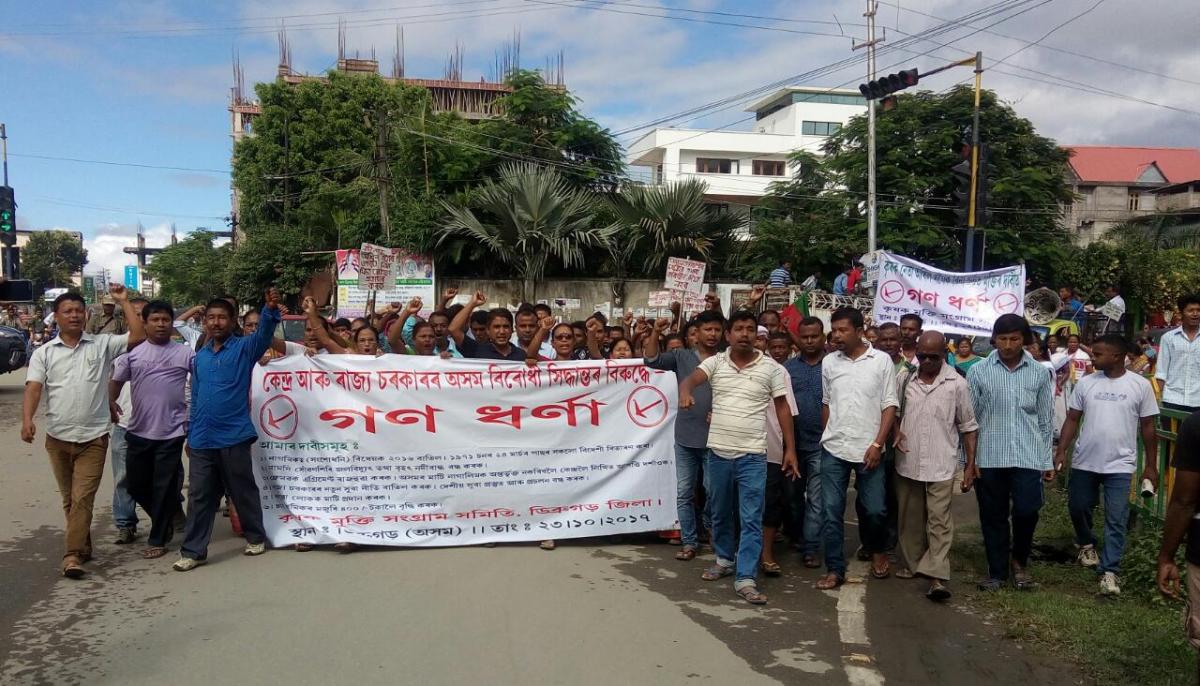 ৰাজ্য চৰকাৰে কৃষক নেতাজনৰ ওপৰত ৰাষ্ট্ৰদ্ৰোহৰ গোচৰ জাপি দি ৰাষ্ট্ৰীয় সুৰক্ষা আইনৰ অধীনত গ্ৰেপ্তাৰ কৰি জেলত বন্দী কৰাৰ প্ৰতিবাদত সোমবাৰেও ডিব্ৰুগড় জিলাৰ উপাযু়ক্তৰ কাৰ্যলয়ৰ সন্মুখত কৃষক মুক্তি সংগ্ৰাম সমিতি, ছাত্ৰ মুক্তি সংগ্ৰাম সমিতি আৰু চাহ শ্ৰমিক মুক্তি সংগ্ৰাম সমিতিয়ে এক বিশাল গণ ধৰ্ণা কাৰ্যসূচী ৰূপায়ণ কৰে।