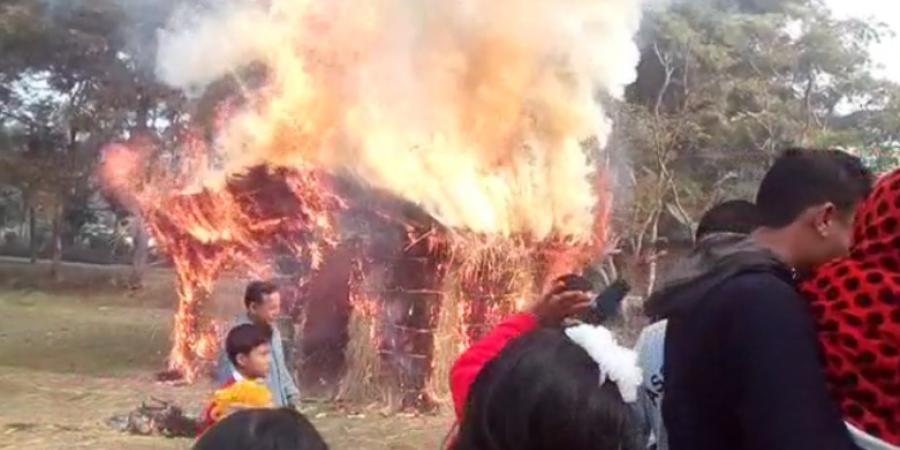 সৰু-ডাঙৰ সকলোৱে পৰম আগ্ৰহেৰে বিহুৰ আনন্দ-উচাহত নিজকে বিলীন কৰি দিছে৷ শনিবাৰৰ নিশা হেঁপাহৰ উৰুকাত ভেলাঘৰত বেছ স্ফূৰ্তি-তামাচাৰে সকলোৱে লগে-ভাগে উদৰ পুৰাই হাঁহে-মাহে, মাছেৰে এসাঁজ খোৱাৰ পিছত দেওবাৰে পালন কৰিছে মাঘ বিহু৷