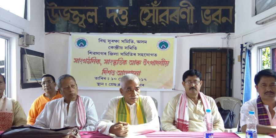 বিহু সুৰক্ষা সমিতি শিৱসাগৰ জিলাৰ সভাপতি লাচিত ফুকনে শলাগৰ শৰাই অাগবঢ়োৱা এই সভাখনত বিহু সুৰক্ষা সমিতি অসমৰ অন্তগত ২০খন জিলাৰ প্ৰতিনিধি উপস্থিত থকাৰ লগতে শিৱসাগৰ জিলা সমিতি বহুকেইজন বিষয়ববীয়া উপস্থিত থাকে।