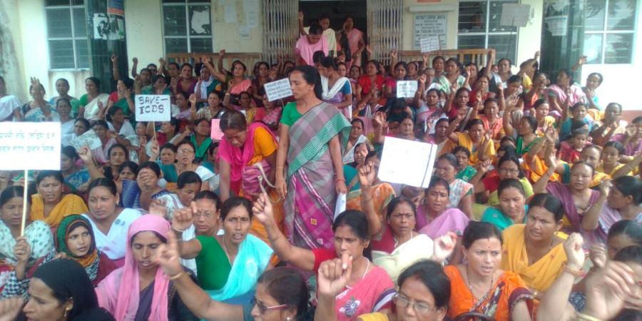 যাৰ ফলত অসহায় মহিলা সকলে ৰাজ পথত নামি প্ৰতিবাদ কৰি আহিছে৷ যদিও চৰকাৰে গুৰুত্ব প্ৰদান কৰা দেখা নাযায়৷ বুধবাৰে বাক্সা জিলাৰ অংগনৱাড়ী-কৰ্মী সহায়িকাসকলে জিলাৰ কুৰিটা বিভাগৰ কাৰ্যালয় সংপৃক্ত হৈ জিলা কেন্দ্ৰ অচল কৰি তোলে৷ প্ৰবেশ পথত বিক্ষোভ প্ৰদৰ্শনেৰে প্ৰতিবাদ সাব্যস্ত কৰে। প্ৰতিবাদত সহস্ৰাধিক অংগনৱাড়ী কৰ্মী সহায়িকাই অংশ লয়।