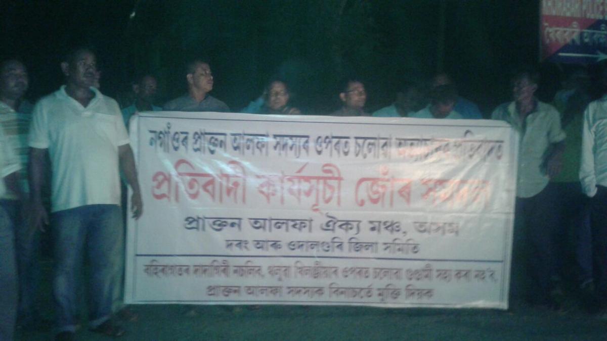 NNO মঙলদৈঃ নগাঁৱত অনা অসমীয়াই বেপাৰীয়ে কোঠাৰ ভিতৰত অসমীয়া যুৱকক হত্যাৰ চেষ্টা চলোৱাত সমগ্ৰ ৰাজ্যৰ লগতে দৰং আৰু ওদালগুৰি জিলাৰ ৰাইজ উত্তেজনা হৈ পৰিছে। চিচিটিভিৰ ফুটেজ প্ৰত্যক্ষ কৰি ক্ষোভিত ফাটি পৰিছে প্ৰাক্তন আলফা ঐক্য মঞ্চ৷ প্ৰাক্তন আলফা ঐক্য মঞ্চৰ দৰং আৰু ওদালগুৰি জিলা সমিতিয়ে আজি জিলা খনৰ নামখোলাত জোৰ লৈ প্ৰতিবাদ সাব্যস্ত কৰে। বহিৰাগতৰ দাদাগিৰি নচলিব, খিলঞ্জীয়াৰ ওপৰত অত্যাচাৰ বন্ধ কৰক আদি শ্ল’গানেৰে পৰিৱেশ উত্তাল কৰি তোলে।