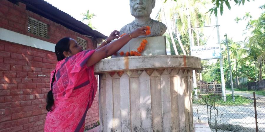 জাপাৰকুছি প্ৰাথমিক বিদ্যালয় চৌহদত থকা আৱক্ষ মূৰ্ত্তিৰ সন্মুখত বন্তি প্ৰজ্বলন আৰু মাল্যাৰ্পন কৰি শিল্পীগৰাকীক গভীৰ শ্ৰদ্ধা নিবেদন কৰে।