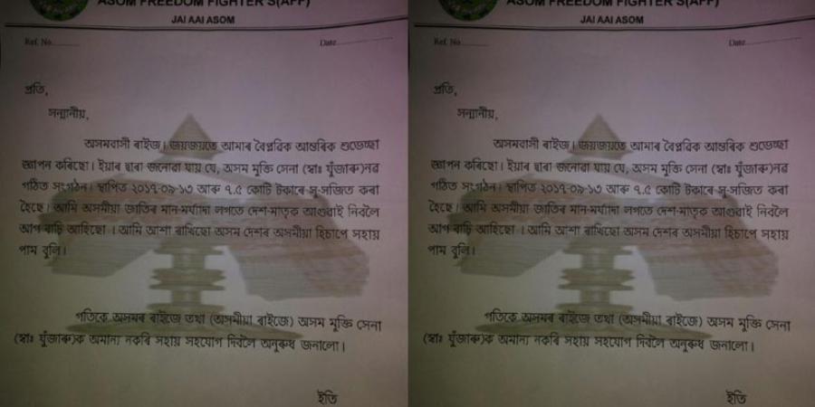 জানিব পৰা মতে, সংগঠনটোৰ হৈ এগৰাকী ব্যৱসায়ীক ধন দাবী কৰি আৰক্ষী জালত পৰে বিকাশ পণ্ডিত নামৰ এজন যুৱক। নিজকে অসম মুক্তি সেনা নামৰ সশস্ত্ৰ সংগঠনৰ সদস্য বুলি দাবী কৰে বিকাশে৷ অখ্যাত সংগঠনটোৰ পেডত উল্লেখ কৰা মতে সংগঠনটোৰ সভাপতি ব্ৰহ্মপুত্ৰ ফেৰী, সাধাৰণ সম্পাদক দিগন্ত হাতীবৰুৱা।