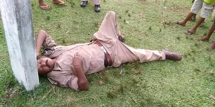ডিঙিলৈকে চুলাই-মদ গিলি হাতত নিজৰ চাৰ্ভিজ ৰিভলভাৰ লৈ সন্ত্ৰাসৰ সৃষ্টি কৰে শিলঘাটৰ কলিয়াবৰ চাহ বাগিচাৰ পূজাস্থলীত। অৱশেষত পূজাস্থলীত অচেতন হৈ পৰি থাকে সুৰামত্ত আৰক্ষী বিষয়াজন। পৰৱৰ্তী সময়ত ঘটনাস্থলীত মহকুমা আৰক্ষী বিষয়া উপষ্ঠিত হৈ নিয়ন্ত্ৰণ কৰে পৰিস্থিত।