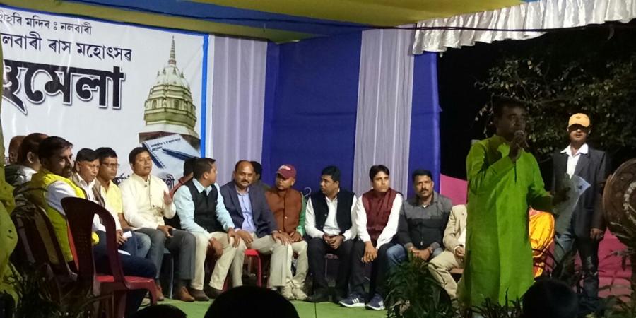 নলবাৰীঃ ৰাজনীতিৰ শত্ৰুই একে খন মঞ্চত একত্ৰিত হ’ল নলবাৰীত৷ বাকযুদ্ধত লিপ্ত হৈ থকা ৰাজনীতিৰ শত্ৰুৱে গালে গীত, আওৰালে কবিতা৷ নলবাৰী ৰাস মহোৎসৱত এই দৃশ্য দেখা গ’ল৷ নলবাৰী ৰাস মহোৎসৱ গ্ৰন্থ মেলাত সোমবাৰে নিশা গীত মাত, নৃত্য, কবিতা, কৌতুকেৰে 'ৰাজনীতিবিদৰ এঘন্টা' শীৰ্ষক অনুষ্ঠান অনুষ্ঠিত হয়৷