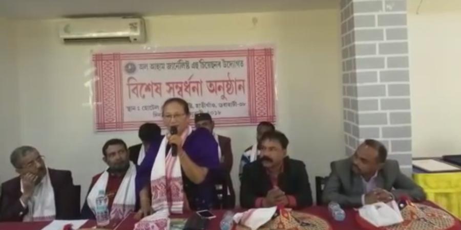 ৰাজ্যৰ বিভিন্ন প্ৰান্তৰ গ্ৰেণ্ড মেজেষ্টিত ৰাজ্যৰ বিভিন্ন প্ৰান্তৰ সাংবাদিকৰ উপস্থিতিত অনুষ্ঠিত সভা খনত সমাজৰ হিতৰ বাবে কাম কৰি অহা বিশিষ্ট লোকক সম্বৰ্ধনা জনাই সাংবাদিক সংগঠনটোৱে৷ বিশিষ্ট শিক্ষাবিদ ড০ দিলীপ বৰাৰ সঞ্চালনাত অনুষ্ঠিত সভাত মুখ্য অতিথি হিচাপে উপস্থিত থাকে বিশিষ্ট সাংবাদিক কণকসেন ডেকা, জনসংযোগ বিভাগৰ সঞ্চালক ৰাজীৱ প্ৰকাশ বৰাই।