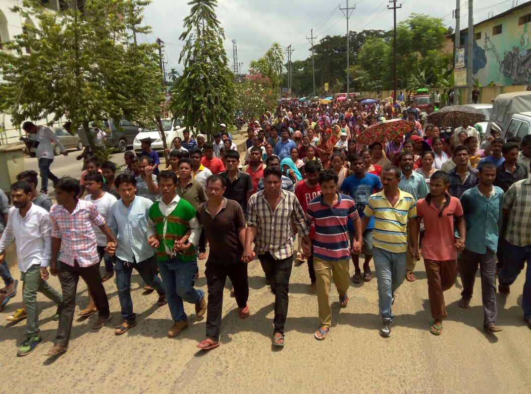 গুৱাহাটীঃ কৃষক মুক্তি সংগ্ৰাম সমিতিৰ প্ৰতিবাদত উত্তাল হ’ল গুৱাহাটী মহানগৰীৰ ন’মাইল অঞ্চল৷ আমচাং অভয়াৰণ্যত ৰাজ্য চৰকাৰে চলোৱা উচ্ছেদ অভিযানৰ বিৰুদ্ধে ৰাজ পথলৈ ওলাই আহিল হাজাৰ হাজাৰ লোক৷ পুৱাৰে পৰা উচ্ছেদ অভিযানৰ বিৰুদ্ধে সমবেত হোৱা হাজাৰ হাজাৰ লোকে ৰাজ্য চৰকাৰৰ বিৰুদ্ধে শ্ল’গান দি ক্ষোভ ব্যক্ত কৰে৷