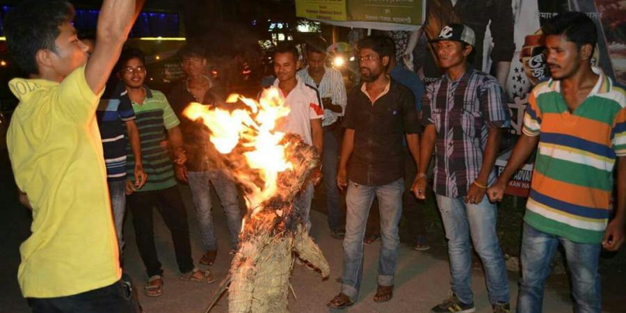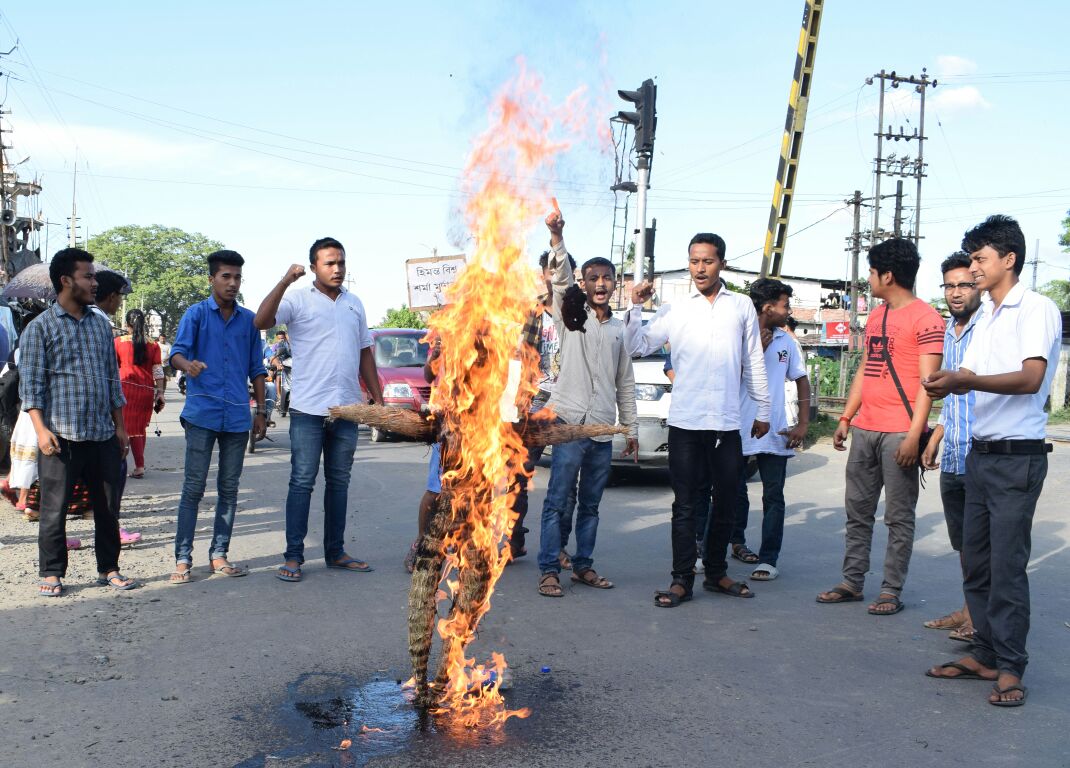 NNO শিৱসাগৰঃ দীনদয়াল উপাধ্যায়ৰ নামত অসমত শিক্ষানুষ্ঠান প্ৰতিষ্ঠা কৰিব বিছৰাৰ লগতে ড০ হীৰেন গোহাঁইক তুচ্ছ-তাচ্ছিল্য কৰাত ছাত্ৰ মুক্তি সংগ্ৰাম সমিতিৰ শিৱসাগৰ নগৰ সমিতিয়ে হিমন্ত বিশ্ব শৰ্মাৰ বিৰুদ্ধে পুত্তলিকা দাহ কৰে।