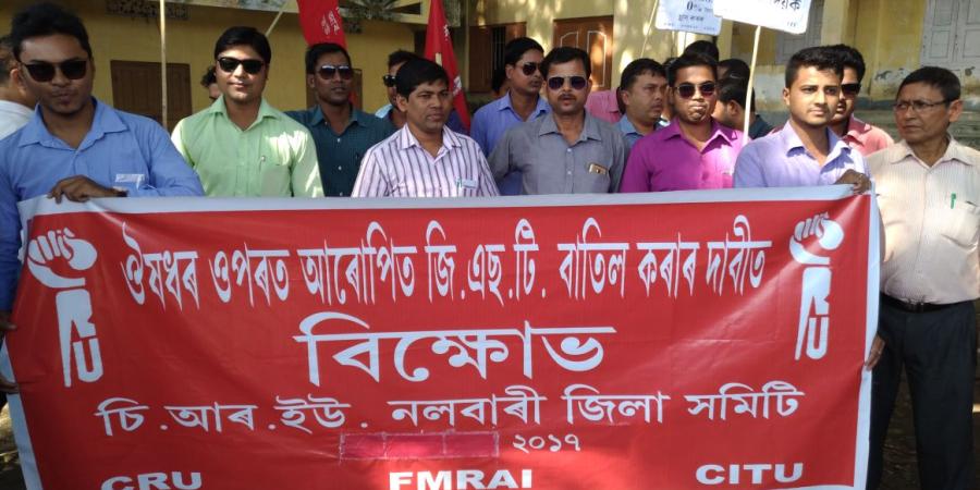 নলবাৰীঃ ঔষধৰ ওপৰত আৰোপিত জি এছ টি উঠাই লোৱাৰ দাবীত নলবাৰী বৃহস্পতি বাৰে চি আৰ ইউ নলবাৰী জিলা কমিটিৰ উদ্যোগত উপায়ুক্তৰ কাৰ্যালয়ৰ সন্মুখত বিক্ষোভ কাৰ্যসূচী ৰূপায়ন কৰাৰ লগতে উপায়ুক্তৰ জৰিয়তে দেশৰ বিত্ত মন্ত্ৰী লৈ এখন স্মাৰক পত্ৰ প্ৰদান কৰে। আৰম্ভণিতে নলবাৰী চহৰত এক প্ৰতিবাদী সমদল উলিওৱা হয়।