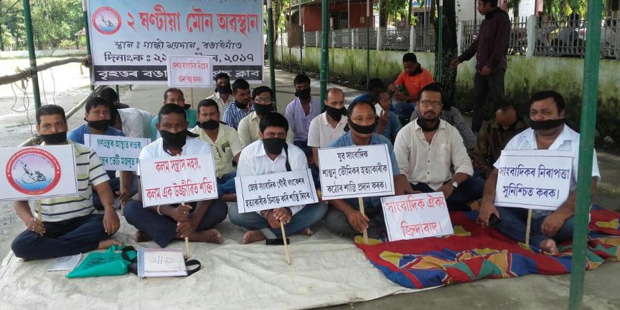 বঙাইগাঁওঃ কৰ্ণাটকৰ জ্যেষ্ঠ সাংবাদিক গৌৰী লংকেশ আৰু ত্ৰিপুৰাৰ যুৱ সাংবাদিক শান্তনু ভৌমিকৰ নৃশংস হত্যাৰ প্ৰতিবাদত আৰু সাংবাদিক সুৰক্ষাৰ দাবীত বঙাইগাঁৱত গ্ৰেটাৰ বঙাইগাঁও প্ৰেছ ক্লাবে দুঘণ্টীয়া মৌন অৱস্থান কাৰ্যসূচী ৰূপায়ণ কৰে৷