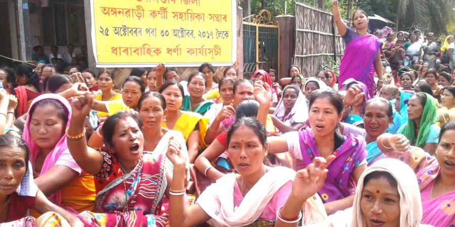 কেইবা শতাধিক অংগনবাড়ী কৰ্মী-সহায়িকাই মাননি বৃদ্ধি, অংগনবাড়ী কেন্দ্ৰৰ ঘৰসমূহ পুনৰ নিৰ্মাণ কৰা, কৰ্মীসকলক অৱসৰকালীন সাহাৰ্য্য প্ৰদান কৰা, মিনি অংগনবাড়ী কেন্দ্ৰসমূহক পুৰ্ণাঙ্গ কেন্দ্ৰলৈ ৰূপান্তৰ কৰা, কেন্দ্ৰসমূহৰ ভাড়াবোৰ নিয়মিতভাৱে আদায় দিয়াৰ দাবীত জিলা সমাজ কল্যান বিষয়াৰ কাৰ্যালয় চৌহদত ধৰ্ণা কাৰ্যসূচী ৰূপায়ন কৰি চৰকাৰৰ বিৰুদ্ধে ক্ষোভ প্ৰকাশ কৰে।