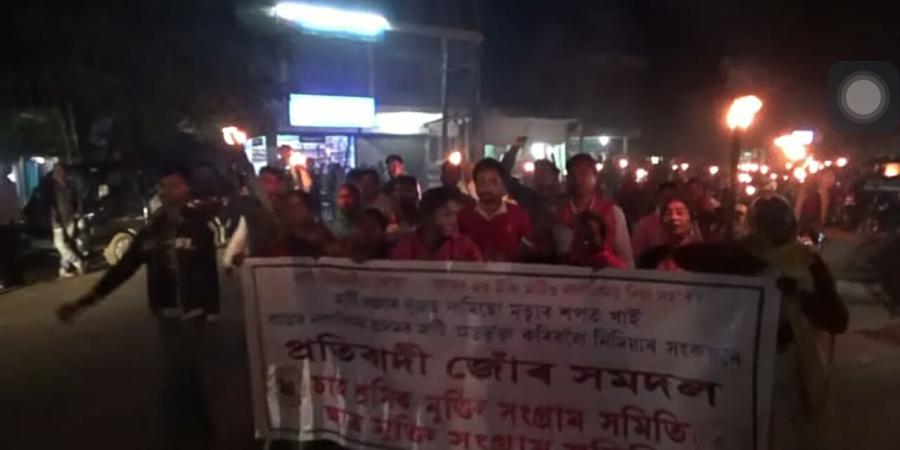 হালোৱাটিং বজাৰৰ মাজেৰে ৬১নং ৰাষ্ট্ৰীয় ঘাইপথেৰে কৃষক মুক্তি সংগ্ৰাম সমিতিৰ কেন্দ্ৰীয় নেতা ধৈৰ্য কোঁৱৰ আৰু লোচন শ্যাম গোহাঁইৰ নেতৃত্বত এক প্ৰতিবাদী জোঁৰ সমদল উলিয়াই সংগঠনটোৱে। এই সমদলত সীমান্তবাসী সহস্ৰাধিক লোক আৰু চাহ বাগিচাৰ বাসিন্দাই অংশগ্ৰহণ কৰে ।