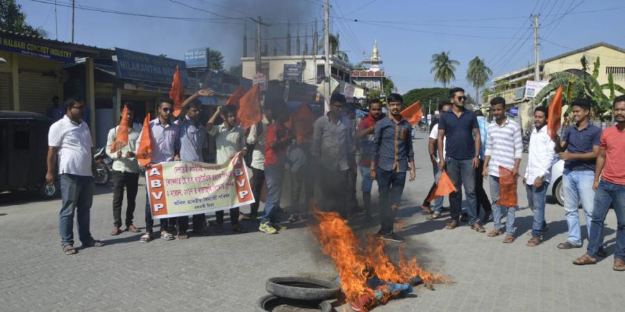 নলবাৰীঃ কেন্দ্ৰ-ৰাজ্যৰ শাসনাৰ গাডীত বহি থকা বিজেপিৰ ভাতৃ ছাত্ৰ সংগঠন অখিল ভাৰতীয় বিদ্যাৰ্থী পৰিষদে নলবাৰীত বৃহস্পতিবাৰে কেৰেলাৰ বাওঁপন্থী চৰকাৰৰ বিৰুদ্ধে প্ৰতিবাদ সাব্যস্ত কৰাৰ লগতে মূখ্যমন্ত্ৰীৰ প্ৰতিকৃতি দাহ কৰে৷ কেৰেলাত বাঁওপন্থী চৰকাৰৰ নেতৃত্বত এ বি ভি পি আৰু সংঘৰ কাৰ্যকৰ্তা এচামক যি নৃশংস ভাবে হত্যা কৰা হৈছিল তাৰেই প্ৰতিবাদ জনাি প্ৰতিবাদী কাৰ্যসূচী ৰূপায়ন কৰে এ বি ভি পি-ৰ কৰ্মকৰ্তা সকলে।