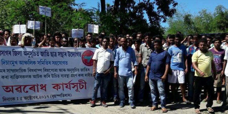 শিৱসাগৰঃ শিৱসাগৰত অনুসূচিত জাতি ছাত্ৰ সন্থাৰ উত্তাল প্ৰতিবাদ৷ সাম্প্ৰদায়ীক সংঘৰ্ষৰ সৃষ্টি কৰিব খোজা শক্তিৰ বিৰুদ্ধে সংগঠনটোৰ কেইবা শতাধিক নেতা-কৰ্মীয়ে পথ অৱৰোধ কৰি উত্তাল প্ৰতিবাদ সাব্যস্ত কৰে৷ সংগঠনটোৰ শিৱসাগৰ জিলা সমিতি আৰু দিচাংমুখ আঞ্চলিক সমিতিয়ে ছচিয়েল মিডিয়া যোগে সাম্প্ৰদায়িক বিষবাস্প বিয়পোৱা তথা অনুসূচিত জাতিক তুচ্ছ-তাচ্ছিল্য কৰা লোকক আটক কৰি উচিত ব্যৱস্থা গ্ৰহণ কৰাৰ দাবীত পথ অৱৰোধ কাৰ্যসূচী ৰূপায়ণ কৰে৷