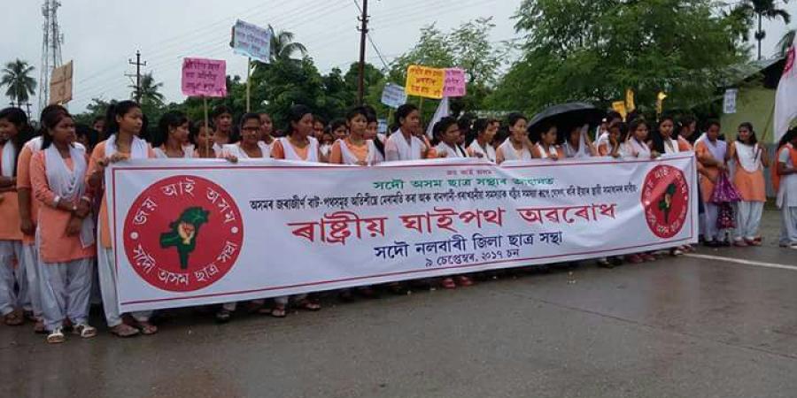 নলবাৰীঃ ৰাজ্যৰ বিভিন্ন প্ৰান্তৰ লগতে নলবাৰীতো সদৌ অসম ছাত্ৰ সন্থাৰ এমহীয়া প্ৰতিবাদ কাৰ্যসূচীৰ আজি সফল ৰূপায়ন হয়৷ সদৌ অসম ছাত্ৰ সন্থাৰ আহ্বানত অসমৰ বানপীড়িতক উপযুক্ত ক্ষতিপূৰণ দিয়া, বান গৰাখহনীয়া সমস্যাক ৰাষ্ট্ৰীয় সমস্যা হিচাপে ঘোষণা কৰা, অসমৰ প্ৰতিটো অঞ্চলৰ ৰাস্তা-ঘাট মেৰামতি কৰাৰ দাবীত আজি নলবাৰী জিলা ছাত্ৰ সন্থাৰ উদ্যোগত এক ঘন্টীয়া পথ অৱৰোধ কাৰ্যসূচীৰে চৰকাৰৰ জনবিৰোধী নীতিৰ বিৰুদ্ধে প্ৰতিবাদ সাব্যস্ত কৰা হয়৷