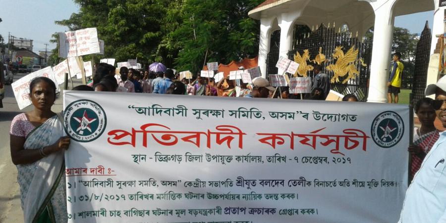 সমিতিৰ দুই শতাধিক কৰ্মী তথা চাহ শ্ৰমিকে হাতে হাতে বেনাৰ, প্লে কাৰ্ড লৈ বলদেৱ তেলিক মুক্তি দিয়ক, নিৰ্দোষী শ্ৰমিকক গেপ্তাৰ কৰা কাৰ্য্য বন্ধ কৰক, ঘটনাৰ উচিত তদন্ত কৰক, বাগান কৰ্তৃপক্ষৰ মইমতালি নচলিল আদি শ্লগান দি উত্তাল কৰি তোলে জিলা উপায়ুক্ত কাৰ্য্যালয়ৰ সন্মুখ। সমিতিৰ নেতৃত্বত শ্ৰমিক সকলে প্ৰথমে চৌকিডিঙী চাৰি আলিৰ পৰা মানকটা পথেৰে সমদল উলিয়ায়।