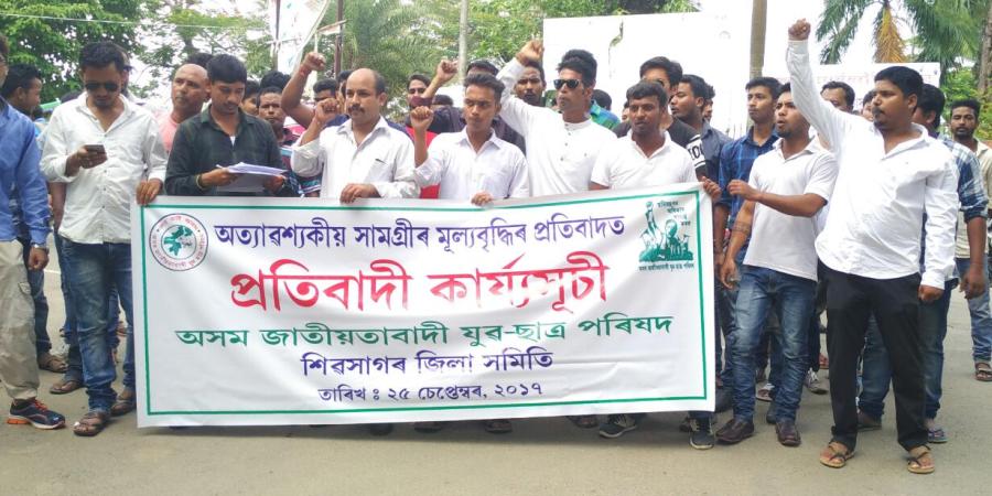 অত্যাৱশ্যকীয় সামগ্ৰীৰ মূল্যবৃদ্ধি ৰোধ আৰু যোগান বিভাগৰ একাংশক নাকী লগোৱাৰ দাবীত আজি সদৌ অসম জাতীয়তাবাদী যুৱ ছাত্ৰ পৰিষদৰ শিৱসাগৰ জিলা সমিতিয়ে ৰাজপথলৈ ওলাই আহি প্ৰতিবাদ সাব্যস্ত কৰে৷