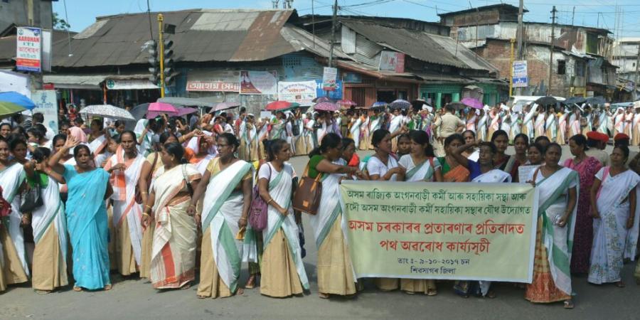ৰাজ্যৰ বিভিন্ন প্ৰান্তৰ লগতে শিৱসাগৰতে আজি অসম ৰাজ্যিক অংগনবাড়ী কৰ্মী, সহায়িকা সন্থা অাৰু সদৌ অসম অংগনবাড়ী কৰ্মী সহায়িকা সন্থাৰ যৌথ উদ্যোগত এক প্ৰতিবাদ কাৰ্যসূচী গ্ৰহণ কৰা হয়৷ অসম চৰকাৰে কৰা প্ৰতাৰণাৰ প্ৰতিবাদত তথা কৰ্মী-সহায়িকাসকলৰ বিভিন্ন দাবী সমূহ পুৰণৰ দাবীত প্ৰতিবাদকাৰী অংগনবাড়ী কৰ্মী সকলে শিৱসাগৰ নগৰত পথ অৱৰোধ কাৰ্য্যসূচী ৰূপায়ণ কৰে।