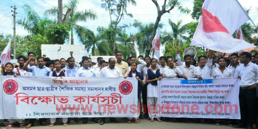 শৈক্ষিক সমস্যা সমাধানৰ দাবীত শিৱসাগৰত আছুৰ বিক্ষোভ