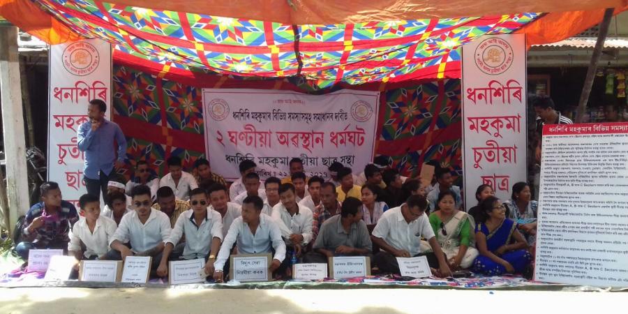 ধনশিৰিঃ ৰাজ্য চৰকাৰৰ বিৰুদ্ধে চুতীয়া ছাত্ৰ সন্থাই আজি গোলাঘাট জিলাৰ ধনশিৰিত প্ৰতিবাদ সাব্যস্ত কৰে৷ সংগঠনটোৰ শতাধিক নেতা-কৰ্মীয়ে মহকুমাধিপতিৰ কাৰ্যালয়ৰ সন্মুথত অৱস্থান ধৰ্মঘট কাৰ্যসুচী ৰূপায়ণ কৰে৷