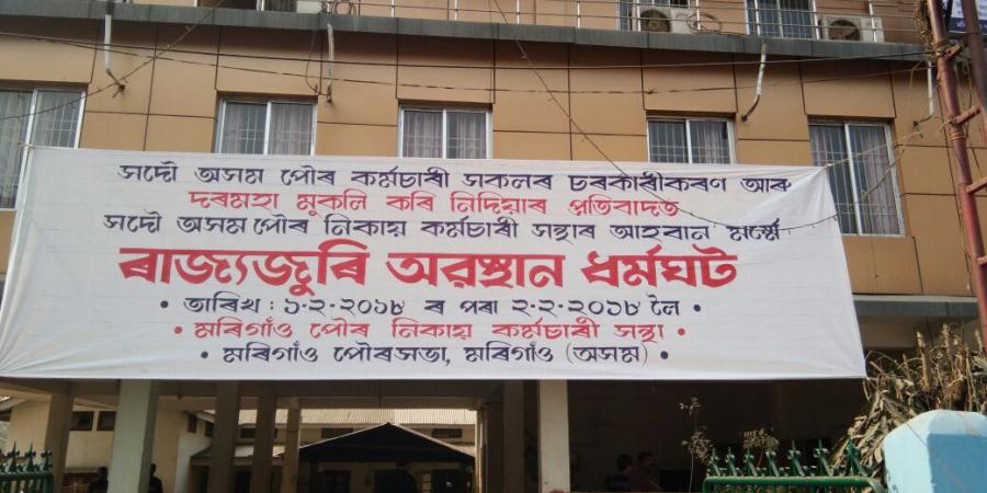 সদৌ অসম পৌৰ কৰ্মচাৰী সকলৰ চৰকাৰী কৰণ আৰু দৰমহা মুকলি কৰি নিদিয়াৰ প্ৰতিবাদত সদৌ অসম পৌৰ নিকায় কৰ্মচাৰী সন্থাৰ আহ্বান মৰ্মে দুদিনীয়া কাৰ্য্যসূচীৰে সমগ্ৰ অসমৰ লগতে মৰিগাঁও জিলাৰ পৌৰসভা কাৰ্যালয়তো পালন কৰা পৰিলক্ষিত হ'ল এই ধৰ্মঘট কাৰ্যসূচী ৷