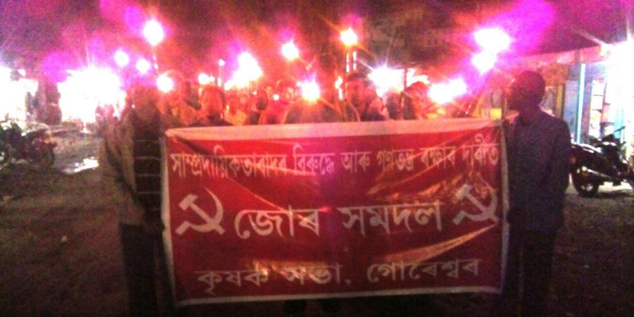 গোৰেশ্বৰঃ নিখিল ভাৰত কৃষক সভাই বাক্সা জিলাৰ গোৰেশ্বৰত সোমবাৰে সাম্প্ৰদায়িকতাৰ বিৰুদ্ধে, গণতন্ত্র ৰক্ষাৰ দাবীত সমগ্ৰ ভাৰতবৰ্ষৰ লগতে অসমতো জোঁৰ সমদল উলিযায়৷