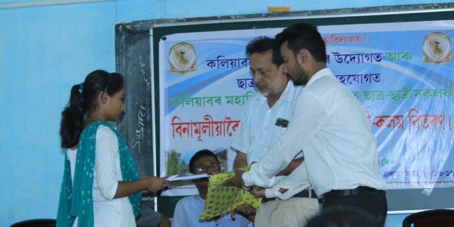 সেয়ে বানে ধুই যোৱা কলিয়াবৰ অঞ্চলত বান বিধ্বস্ত ছাত্ৰ-ছাত্ৰীসকলক পূুনৰ উদ্জীৱিত কৰিবলৈকে কলিয়াবৰ মহাবিদ্যালয়ৰ উদ্যোগত আৰু কলিয়াবৰ মহাবিদ্যালয় ছাত্ৰ একতা সভাৰ সহযোগত মহাবিদ্যালয় খনত পঢ়ি থকা বানাক্ৰান্ত ছাত্ৰ-ছাত্ৰীৰ মাজত ২৪ আগষ্ট ২০১৭ তাৰিখে শৈক্ষিক প্ৰয়োজনীয় সামগ্ৰী বিতৰণ কৰা হয়।